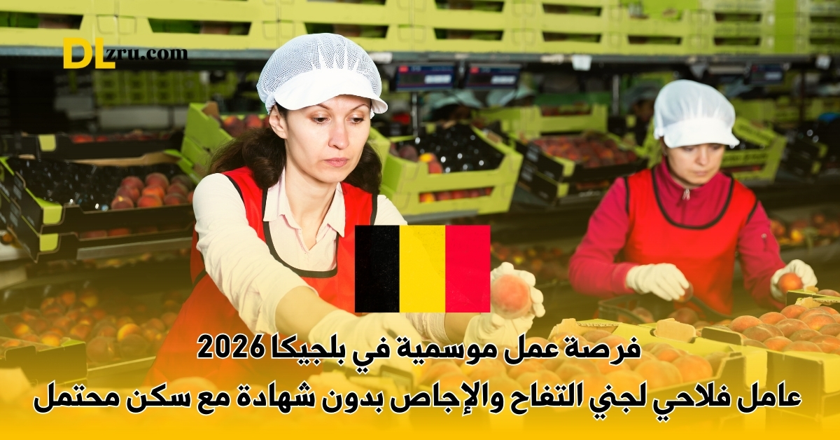 اكتشف فرصة عمل موسمي في المجال الفلاحي في بلجيكا لعام 2026، دون الحاجة إلى خبرة أو شهادة، حيث يمكنك جني التفاح والإجاص، مع عقد قانوني، وأجر جيد، وإمكانية توفير سكن.
